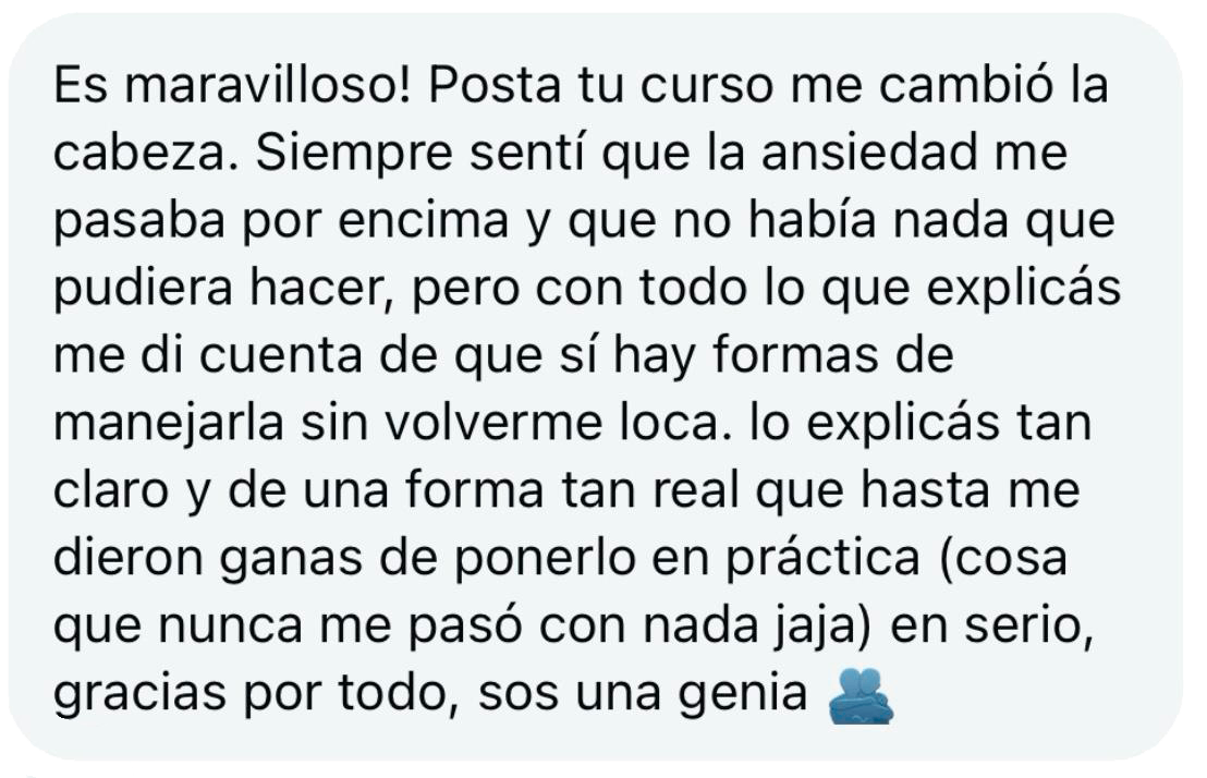 El curso está dirigido a personas que atraviesan ansiedad o que acompañan a personas con ansiedad; así como también a psicólogos o coaches que quieran conocer más sobre el tema. No es necesario contar con experiencia o conocimiento teórico previo.